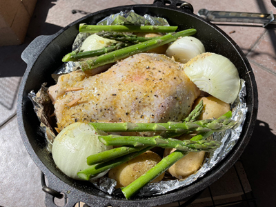 この日のお昼ごはんはダッチオーブンで作る「丸鶏」にチャレンジしました。