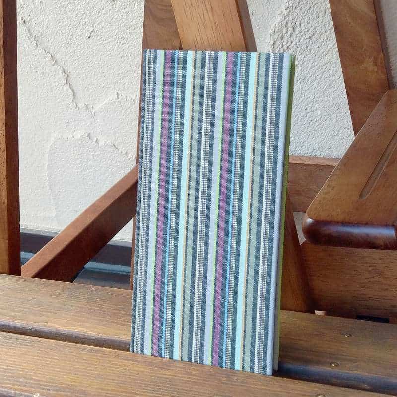 伊勢の国の伝統織物「伊勢木綿」を使用。伊勢木綿特有の色鮮やかな織り糸を使った印象的な縦縞模様です。総柄の生地をカットして表紙を製作しておりますので製品によって柄の出方が違います。画像や説明文に掲載されております絵柄が含まれていない場合もございますので予めご了承ください。
