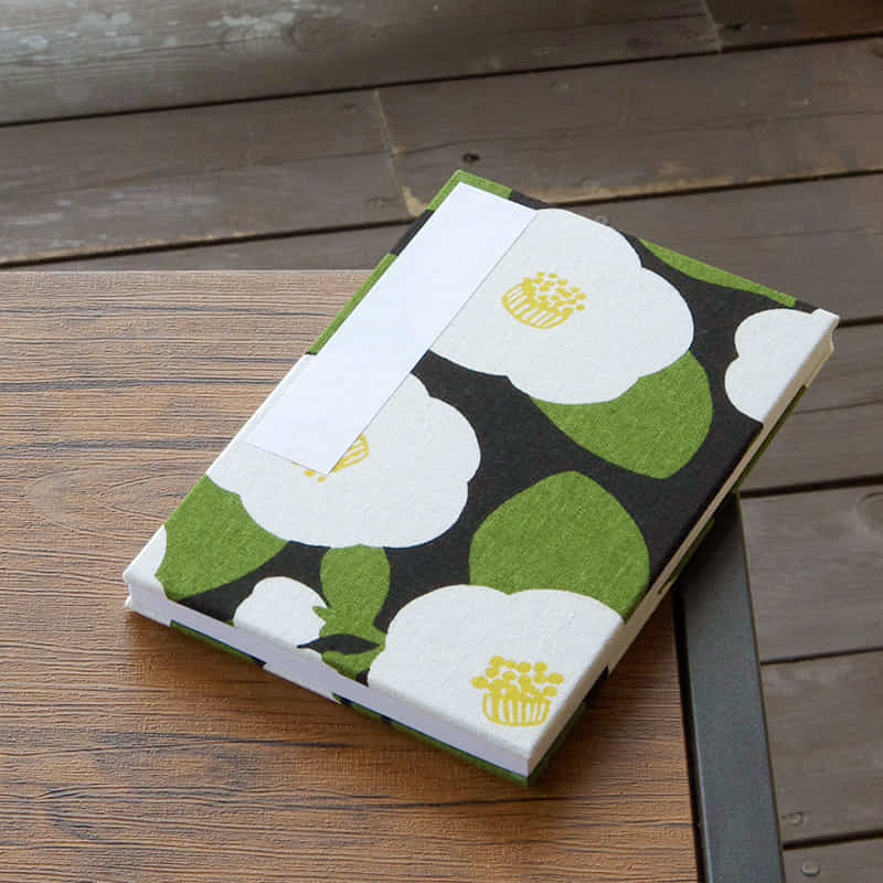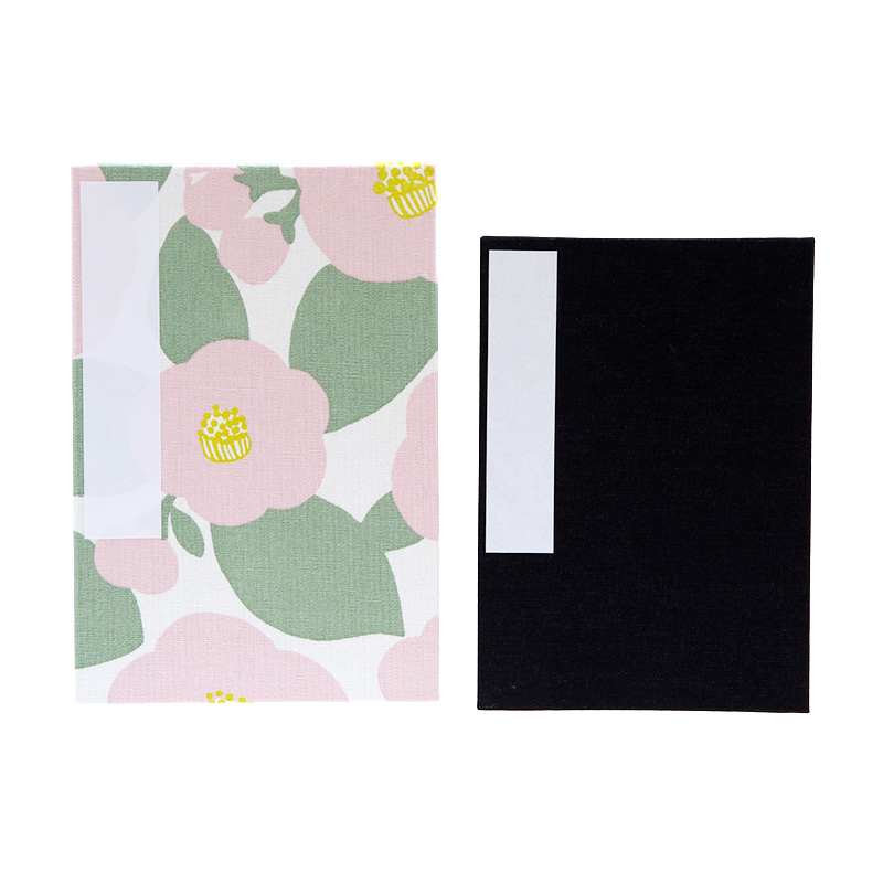 椿の花が大きく描かれた御朱印帳です。生地の裁断によって個々に異なる表情を見せます。それぞれの一冊が独自の風合いを持っており、その多彩な違いをお楽しみください。