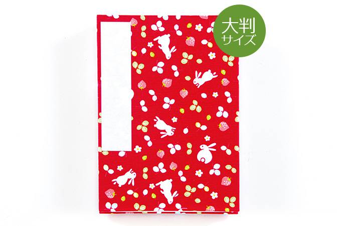 《ネコポス送料無料》【大判】御朱印帳(納経帳) 苺うさぎ(赤)