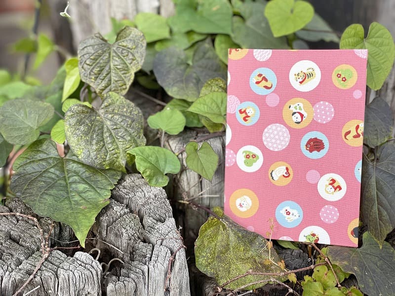 総柄の生地をカットして表紙を製作しておりますので製品によって柄の出方が違います。画像や説明文に掲載されております絵柄が含まれていない場合もございますので予めご了承ください。朱印帳(納経帳)は神社や寺院でご朱印を頂く帳面になります。ピンク地に水玉柄。水玉にはかわいいイラストで描かれた干支や、青海波や麻の葉など伝統文様柄が描かれています。とても縁起の良い柄に仕上がっております。御朱印帳の紙は日本の多くの神社仏閣のご朱印帳で使用されております白色の和紙です。伝統技術を持つ職人が1冊1冊、手作りで蛇腹の御朱印帳を製本しております。持ち運びや保管には関連アイテムのカバーやケース、また御朱印袋(ポーチ)などもおすすめです。